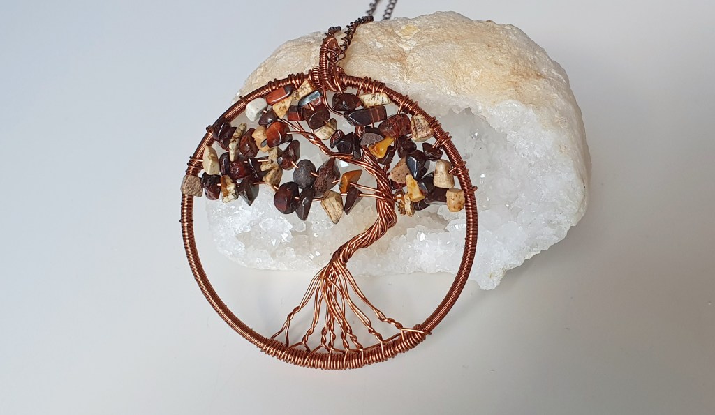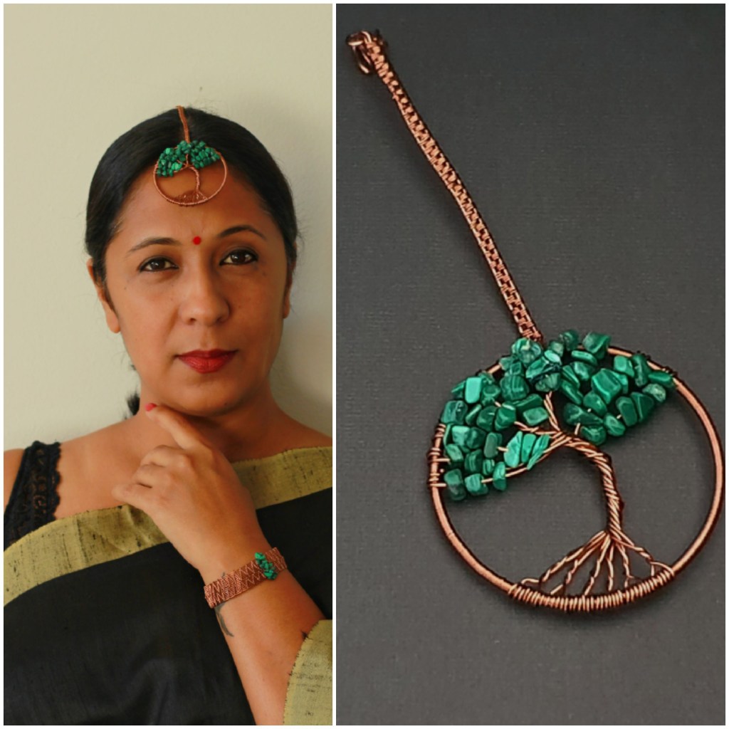 The Tree of Life has always fascinated me. I have been wire wrapping on variations of Tree of Life in copper and silver by adding gemstone chips or just a single pearl and it is so satisfying. I started off with pendants and now I make a wide range of Tree of Life bracelets, anklets, rings and Maang Tikka too.