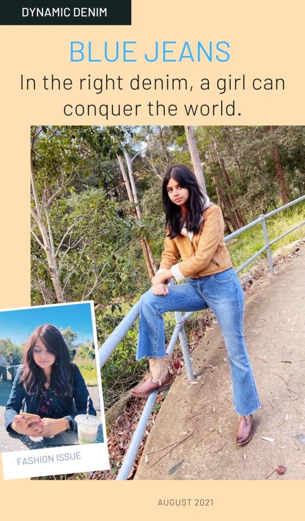 Denim is a material that is strong, lasts long and doesn’t tear easily and there is no doubt in the perpetuity of this classic fabric. The birthplace of denim is the southern French city of Nimes. The word ‘denim’ is derived from the French “serge de Nimes”, meaning “serge (a sturdy fabric) from Nimes”. The theme for our August 2021 Fashion Issue (in collaboration with Sakhi magazine) is Dynamic Denim.